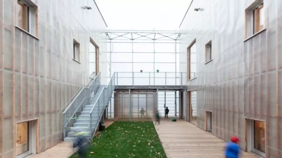 Veškeré tyto limity, stejně jako nové trendy v přístupu k dětem a kvalitě prostředí, v němž jsou vychovávány, vykrystalizovaly v předložený návrh. Budova je zvláštní nejen svým vzhledem, ale i přístupem, který poskytuje dětem svobodu, vybízí je k objevování, dává jim možnost přizpůsobovat si prostředí, které nemusí být vnímáno jako definitivní. Třídy nejsou jen obdélníkové prostory, jejich proporce je úzká, vysoká a po stranách se do nekonečna rozšiřuje pomocí průhledů paralelními okny. Děti se mohou dostat jednoduše ven a pohybovat se v prostoru vytvořeném vrstvením fasád. Vnější jemná průsvitná vrstva je hranicí mezi dětským a skutečným světem.